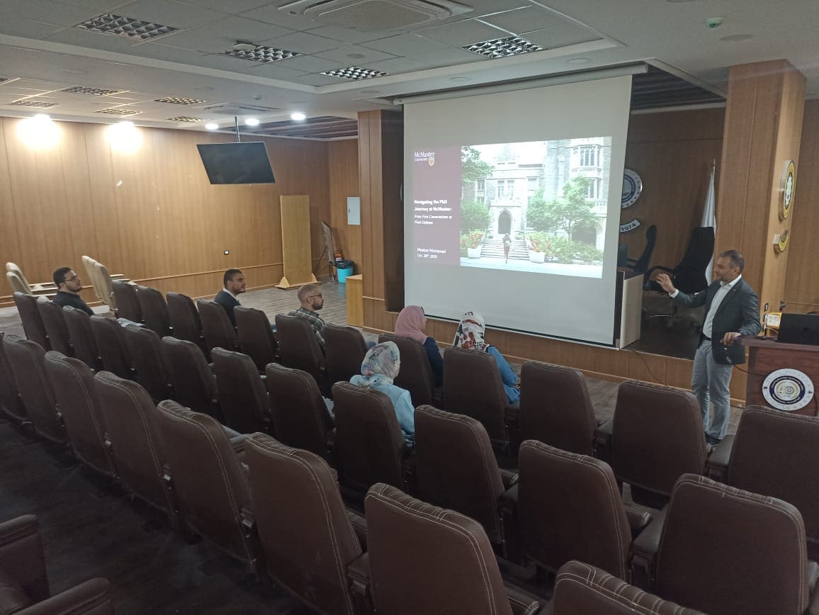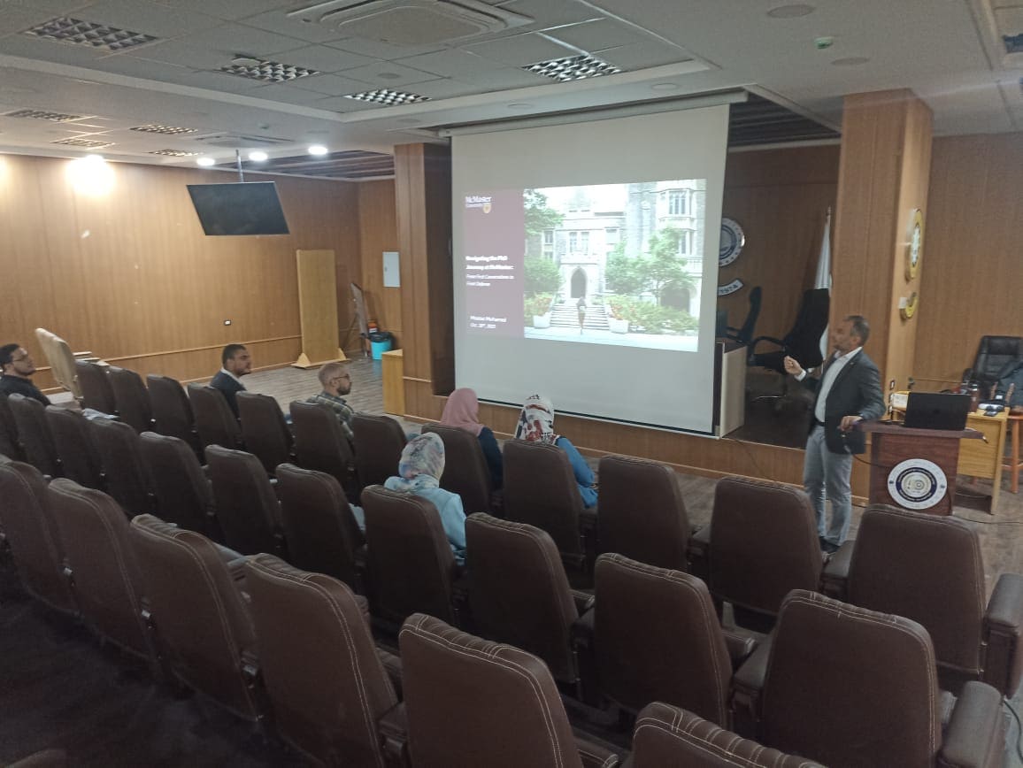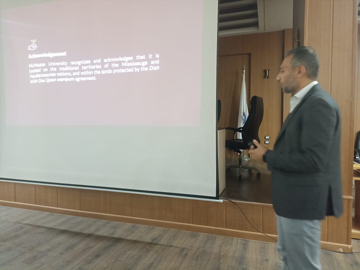 د/معتز محمد، ممثل جامعة ماكمستر بدولة كندا يلقي محاضرتين بمدرج الدكتور رشاد البدراوى