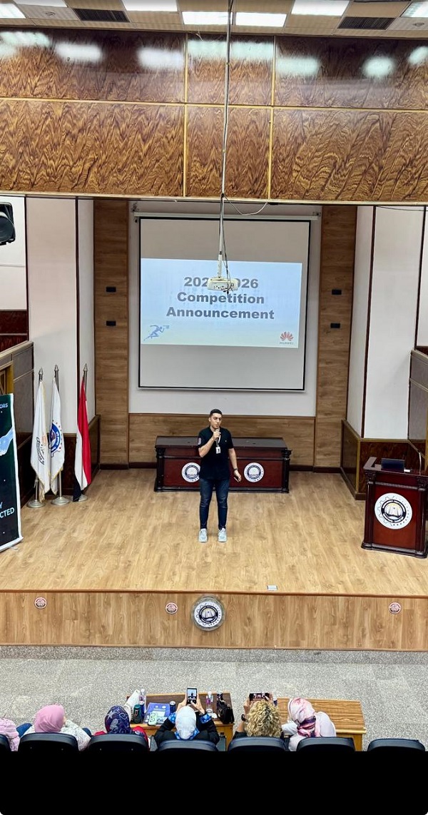 في إطار الحرص والاحتفاء بتميز طلاب أكاديمية هواوي بالجامعة وعلى دعم طلابها وتأهيلهم لمواكبة متطلبات التحول الرقمي وسوق العمل العالمي، نظمت الكلية يوم الإثنين الموافق 20 أكتوبر 2025 مؤتمر Huawei ICT بقاعة أ.د مجدي أبو ريان في تمام الساعة الواحدة ظهراً، وذلك بحضور نخبة من أعضاء هيئة التدريس وممثلي شركة هواوي العالمية.
