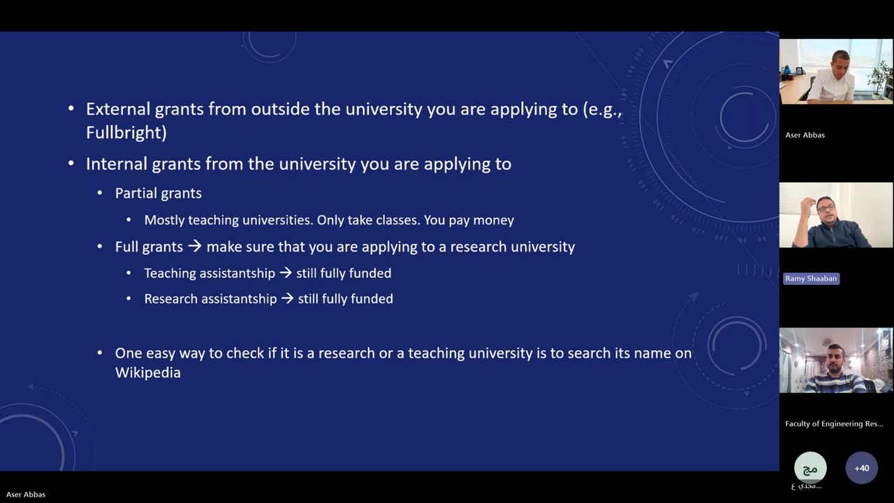 وحدة دعم البحث العلمي تنظم محاضرة حول التقديم لمنح الماجستير والدكتوراه بالولايات المتحدة الأمريكية