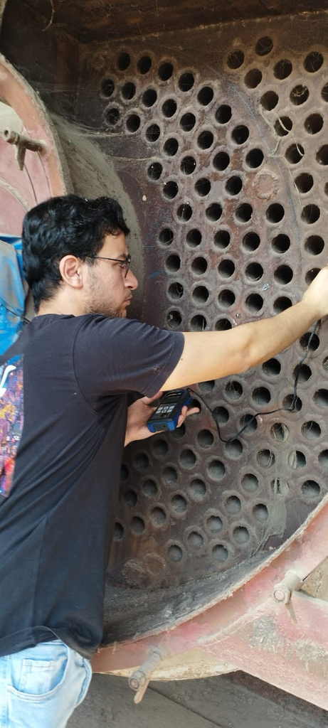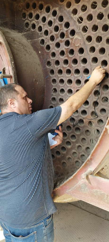 هذا وتم إجراء القياسات والفحص بحضور كل من: م/ ياسر رضا عبد المولي مشرف عام الصيانات الهندسية، أ/ عبد الله محمد رمضان مدير التكييف والغلايات بالشركة.