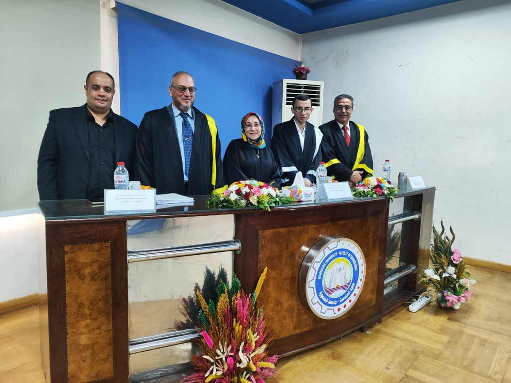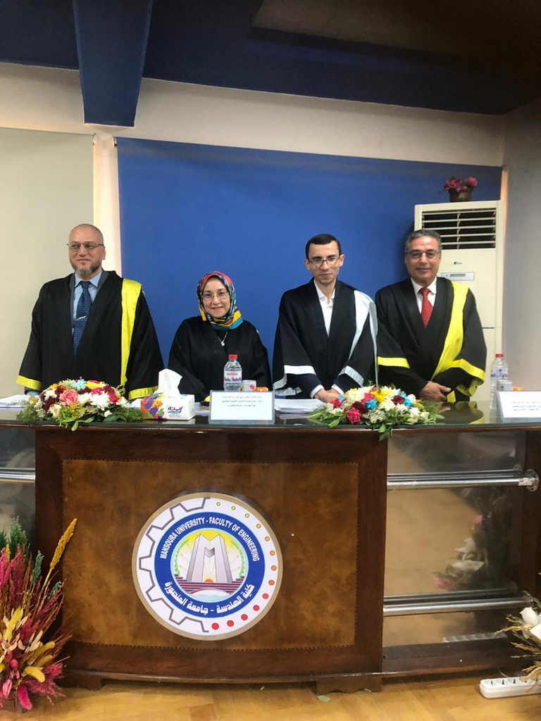 وبحضور عدد من أعضاء هيئة التدريس بالقسم وتم منح سيادته درجة الماجستير في هندسة التصميم والتصنيع.