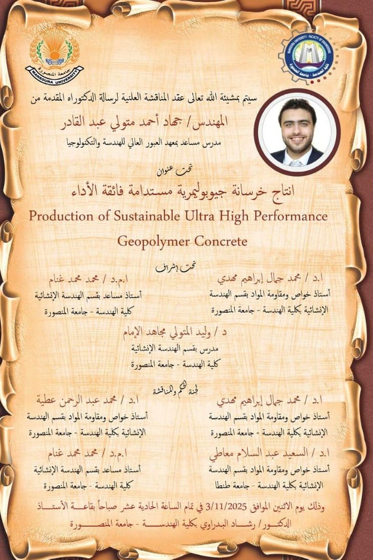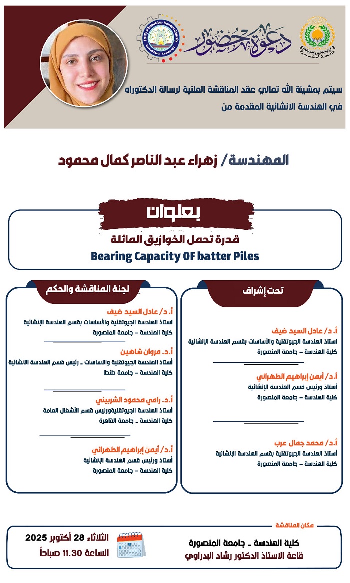 في أجواء مليئة بالحماس والانتماء، شهدت كلية الهندسة بجامعة المنصورة تنظيم حفل استقبال طلاب برنامج الهندسة المدنية، والذي أقيم تحت رعاية وحضور الأستاذ الدكتور شريف مسعود بدوي – عميد الكلية، وبمشاركة وكلاء الكلية، ورؤساء الأقسام الثلاثة المشاركة في البرنامج، وهي: