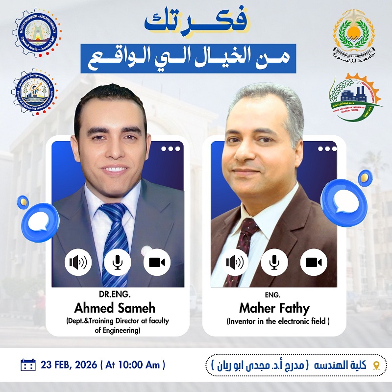 تتشرف كلية الهندسة – جامعة المنصورة بدعوتكم لحضور ندوة مميزة بعنوان: 💡 كيف تحوّل فكرتك إلى مشروع حقيقي؟