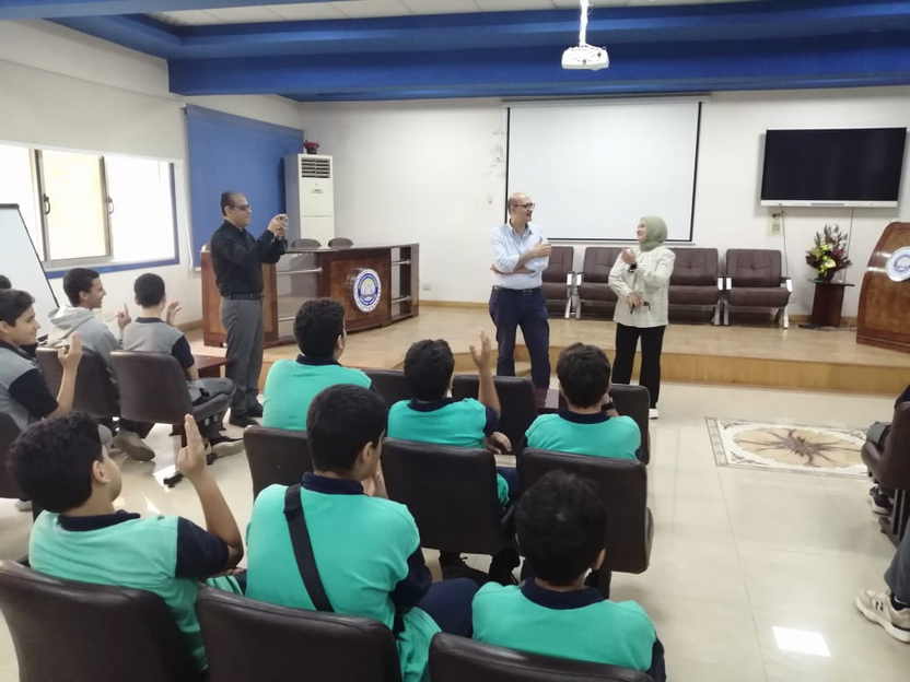 استقبل الطلاب وشارك في الترحيب بهم كلٌّ من الأستاذ الدكتور شريف مسعود البدوي – عميد كلية الهندسة، والأستاذة الدكتورة أميرة يسن هيكل – وكيل الكلية لشئون خدمة المجتمع وتنمية البيئة. وقد تم استقبال وفد طلاب الرحلة في قاعة الأستاذ الدكتور السعيد عاشور، حيث رحّب سيادة العميد بالطلاب، ووجه لهم كلمات تحفيزية حول أهمية العلم والبحث والتفكير الابتكاري في بناء مستقبل أفضل، مؤكدًا أن كلية الهندسة تفتح أبوابها دومًا أمام طلاب المدارس للاطلاع على ما تقدمه من علوم وتطبيقات تخدم المجتمع، كما قام عدد من الطلاب بعرض أفكارهم ومقترحاتهم، والتي بصدد أن تكون لبنة أو بداية مشروع في المستقبل.