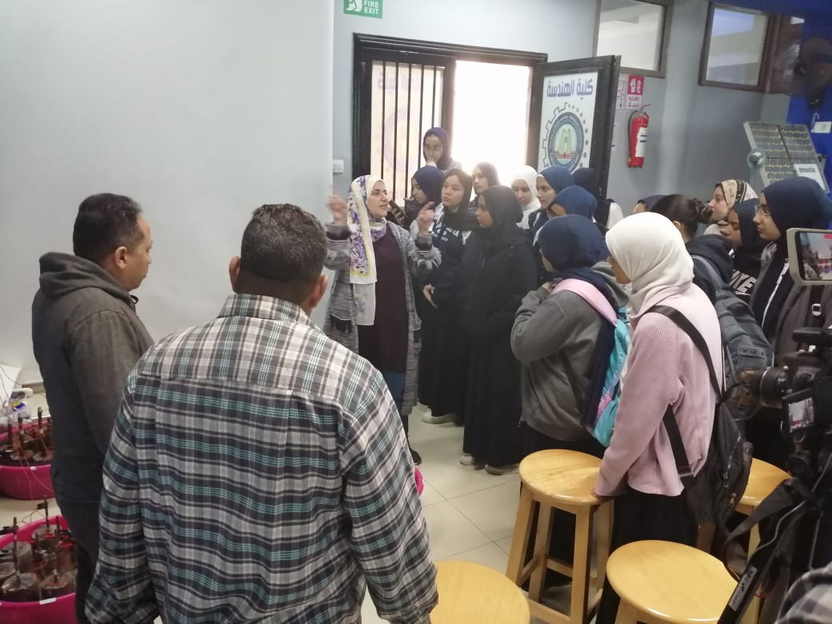 وزارت الطالبات كذلك معمل الطاقة الشمسية واستوديو الإبداع المعماري بقسم الهندسة المعمارية، حيث اطلعْن على نماذج تصميمات طلابية وأساليب العمل الإبداعي في المجال، وقد قامت الكيميائية عبير الطوخي – مدير إدارة المعامل بالكلية بتقديم شرح وافٍ عنهما.