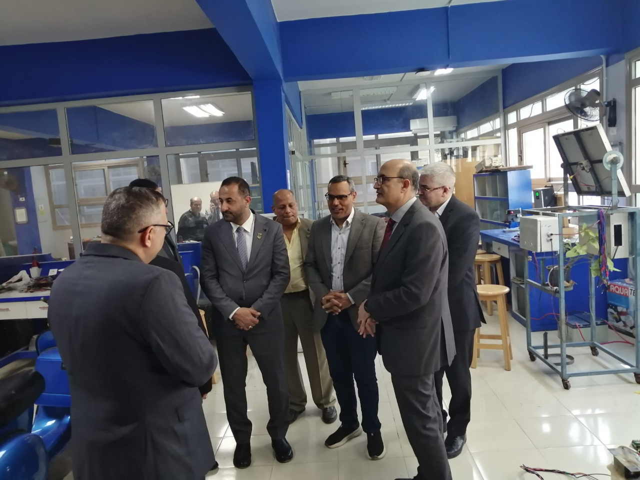 وشملت الجولة التفقدية عددًا من الوحدات والمعامل المتميزة بالكلية، من بينها: مركز تميز الطاقة، معمل الطاقة الشمسية، استديو هندسة العمارة، معمل إنترنت الأشياء، معمل المجسمات المعمارية، ورشة الهندسة الطبية، مركز النانو تكنولوجي، معمل الذكاء الاصطناعي، وإدارة شؤون الطلاب، حيث اطّلع الوفد على أحدث التجهيزات والإمكانات التقنية المتاحة، واستمع إلى شرح تفصيلي حول آليات ربط البحث العلمي باحتياجات الصناعة، ودعم المشروعات التطبيقية، وتطوير البرامج التعليمية بما يواكب التطورات التكنولوجية الحديثة.