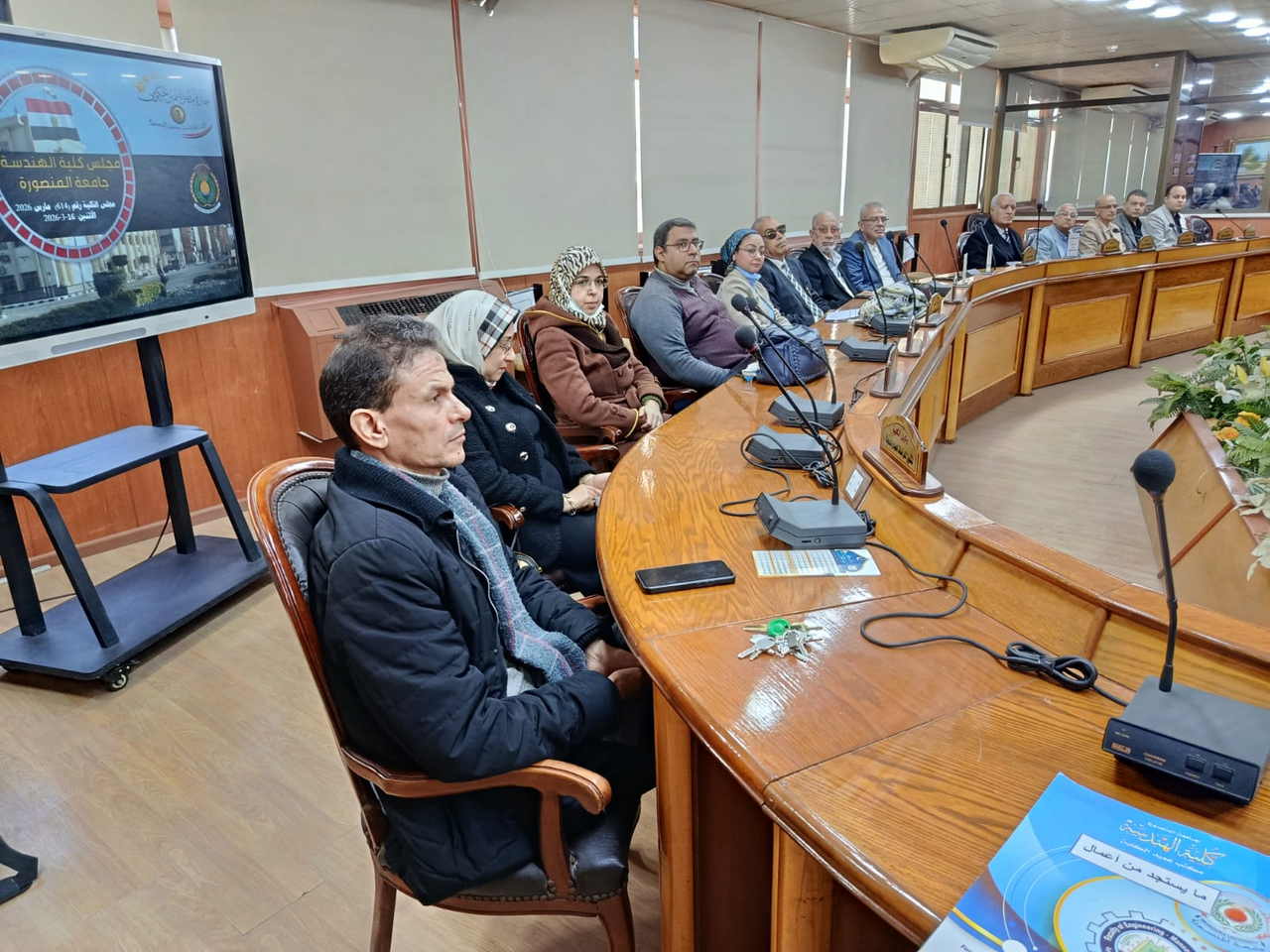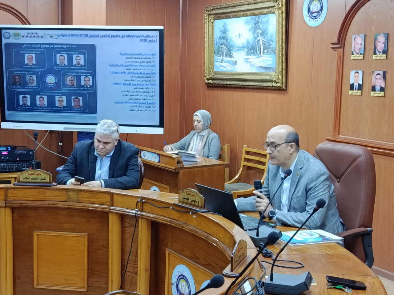 تم عقد مجلس الكلية رقم (614) يوم الاثنين الموافق 16 مارس 2026 فى تمام الساعة العاشرة صباحاً بقاعة اجتماعات مجلس الكلية، وذلك برئاسة السيد الأستاذ الدكتور شريف مسعود البدوي عميد الكلية وبحضور السادة: وكلاء الكلية ورؤساء الأقسام العلمية ومديري البرامج النوعية وعدد من الأساتذة المتفرغين، وعدد من مسئولي الشركات كممثلين عن المجتمع الخارجي.