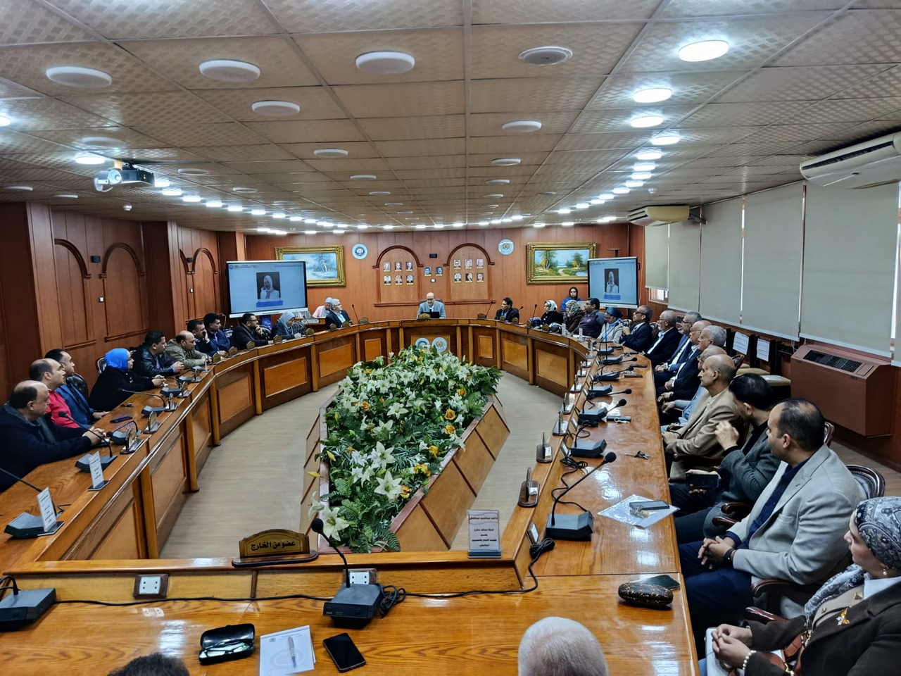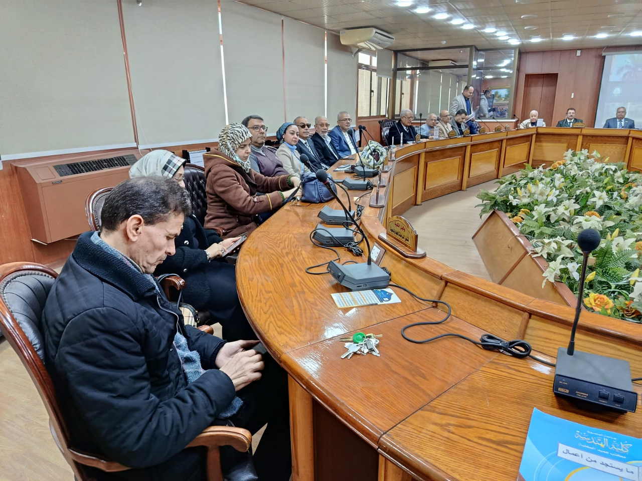 وفى النهاية انتقل سيادته لمناقشة الموضوعات الواردة بجدول الأعمال واتخاذ قرارات بشأنها مع أعضاء مجلس الكلية الموقر.